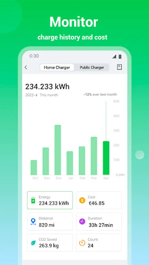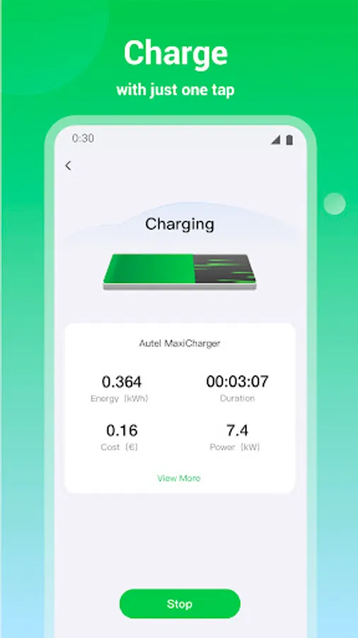 • View real-time charging statistics including: Power usage, energy costs, charging amperage, charge duration and much more!