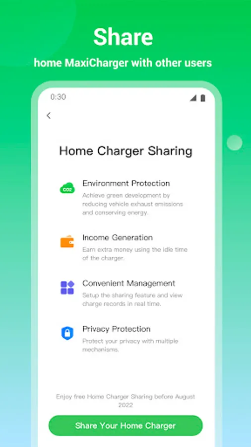 • Home Charger Sharing supporting sharing home chargers with other drivers for extra revenue.