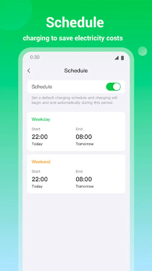• Schedule charging sessions during off-peak times to reduce electricity costs.