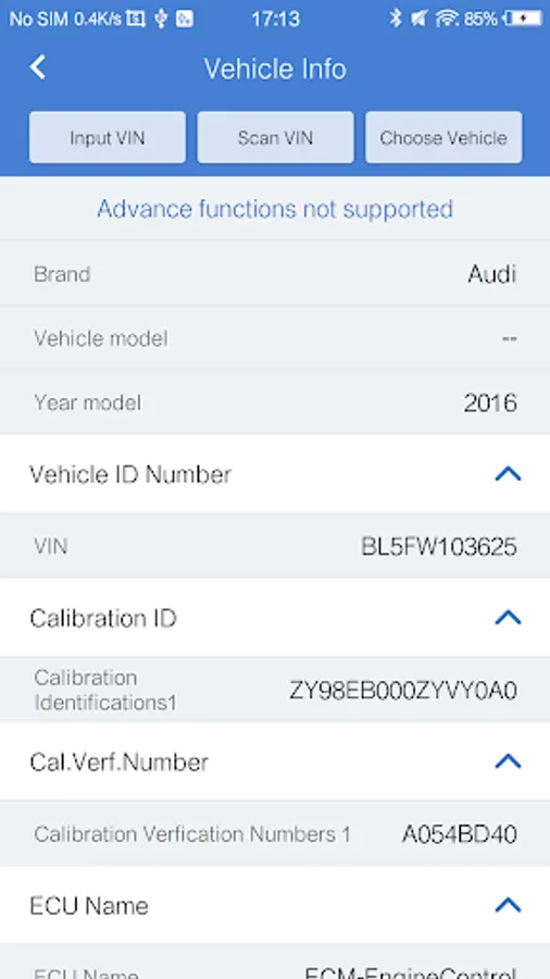 Ⅸ Displays the VIN, CVN and other information of the test vehicle