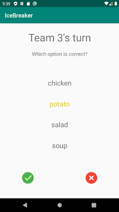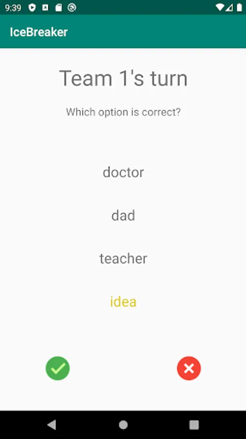 Game is played in teams. One player has to represent a word and his/her teammates have to choose the correct word from 4 possibilities. The winner is a team which gets specified amount of points.