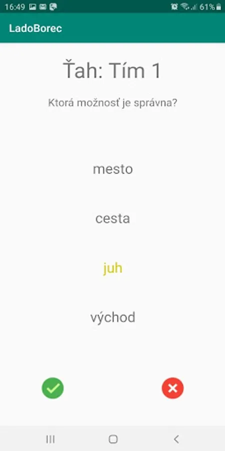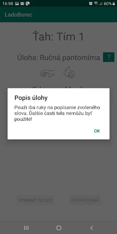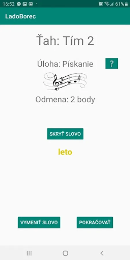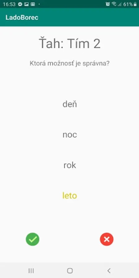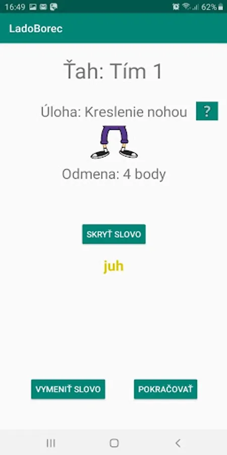 Party LedBorec is a team game. The player must describe the selected word and his teammates must select the word from the 4 options. The winner is the team that earns the set points.