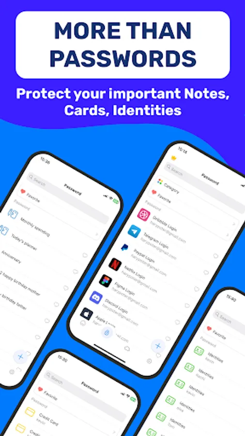 Dark Mode helps you use the app comfortably in low-light environments. The Credit Card Note and Vital Identification feature helps you store sensitive information safely and conveniently.