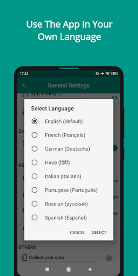 Experience the app in a more intuitive way by using it in your language. The app comes with the support of 7 popular supported languages. Don't see your language in the app? Reach out.