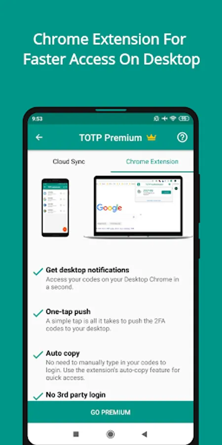 2FA on the desktop is now easier than ever before! With a single tap, push your 2FA codes to your desktop browser. No need to manually type in the codes again.