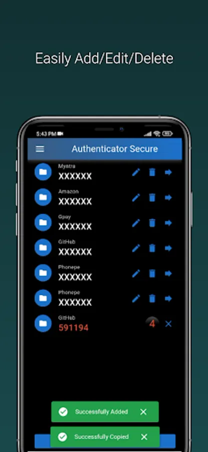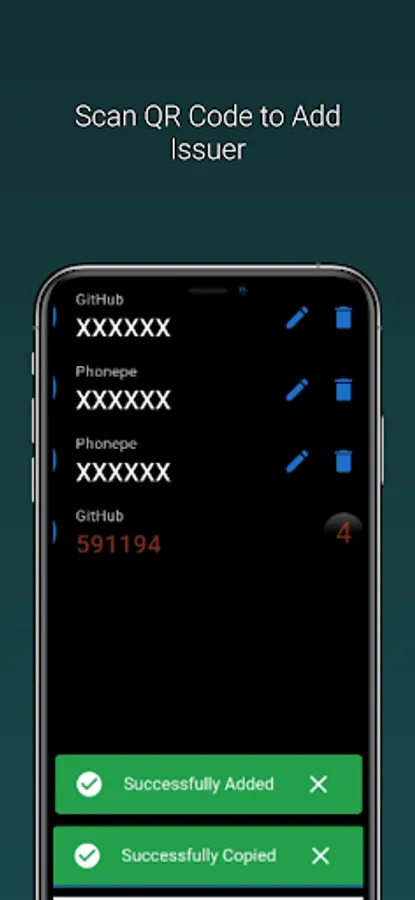 Manual Entry: In cases where QR codes are not available or supported, our app also allows you to manually enter the account details. You can input the issuer name, secret directly into the app. This ensures that you can add accounts from websites or services that do not provide QR codes for authentication.