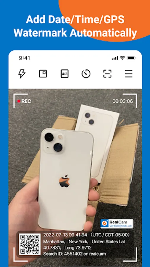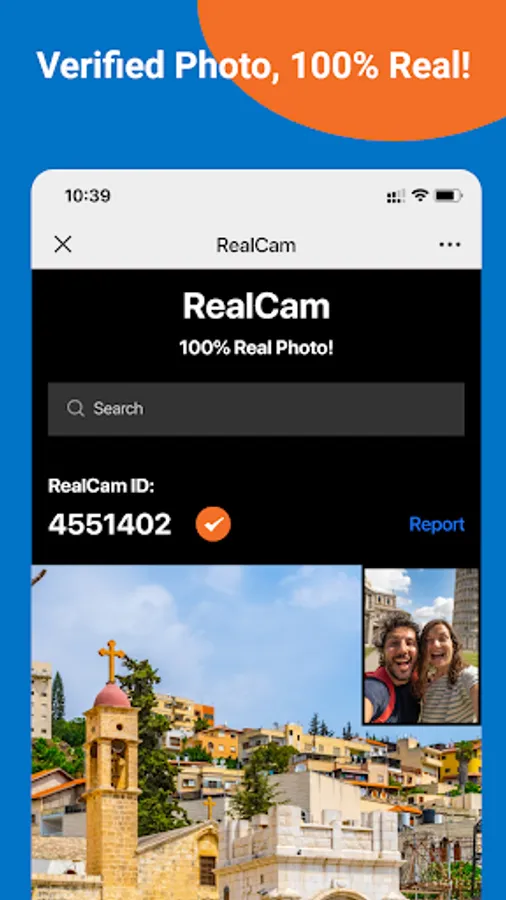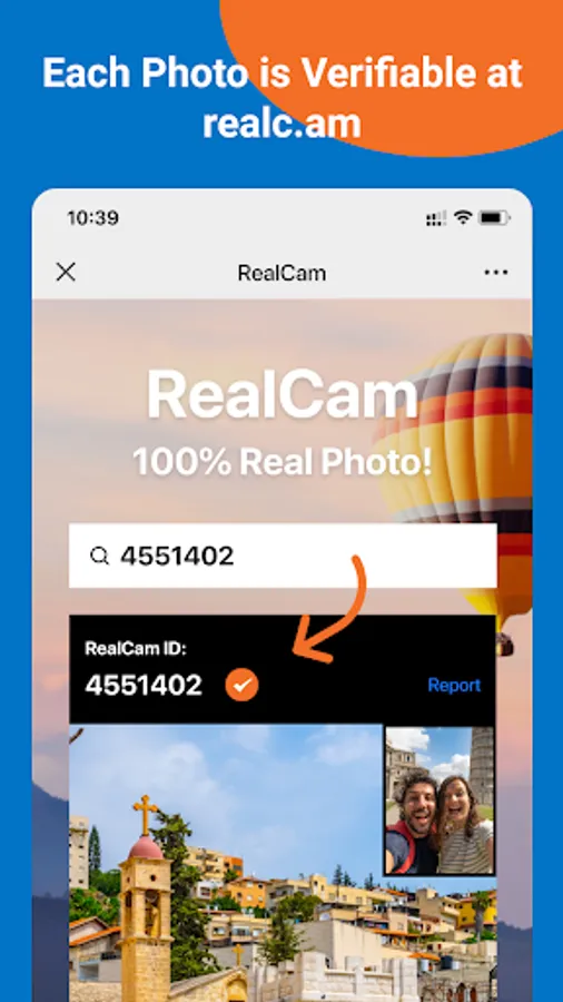 Unique ID and QR code for each photo. Search ID or scan QR code to find if the photo/video is real on realc.am