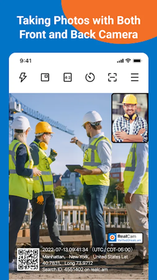 Turn on both front and back camera to make your photo/video more credible. You can close front camera on edit page.
