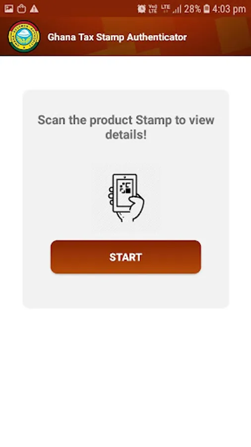 1) To launch the Consumer app, tap the Ghana Tax Stamp Authenticator logo on your