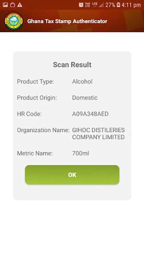 The Ghana Revenue Authority provides Ghana Tax Stamp Authenticator app to the Ghanaian public to verify the authenticity of products sold in the retail stores in Ghana.