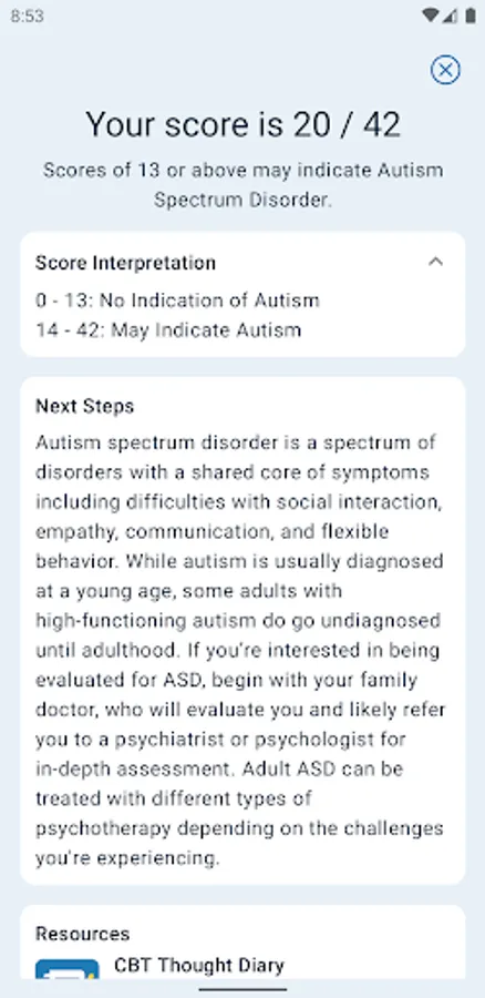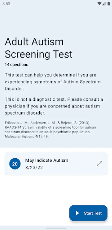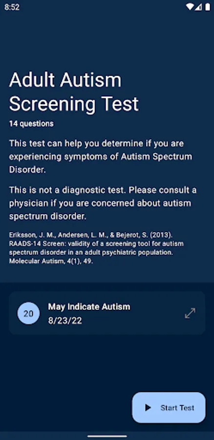 Disclaimer: This test is NOT a diagnostic test. A diagnosis can only be provided by a qualified healthcare professional. Please consult a physician or mental health professional if you are concerned about your mental health.