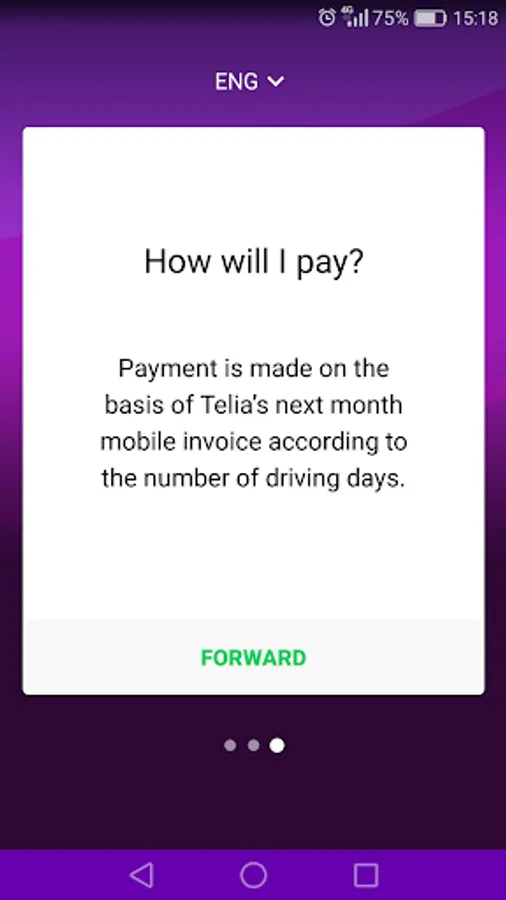 - Payment on the basis of Telia’s next month mobile invoice according to the number of driving days