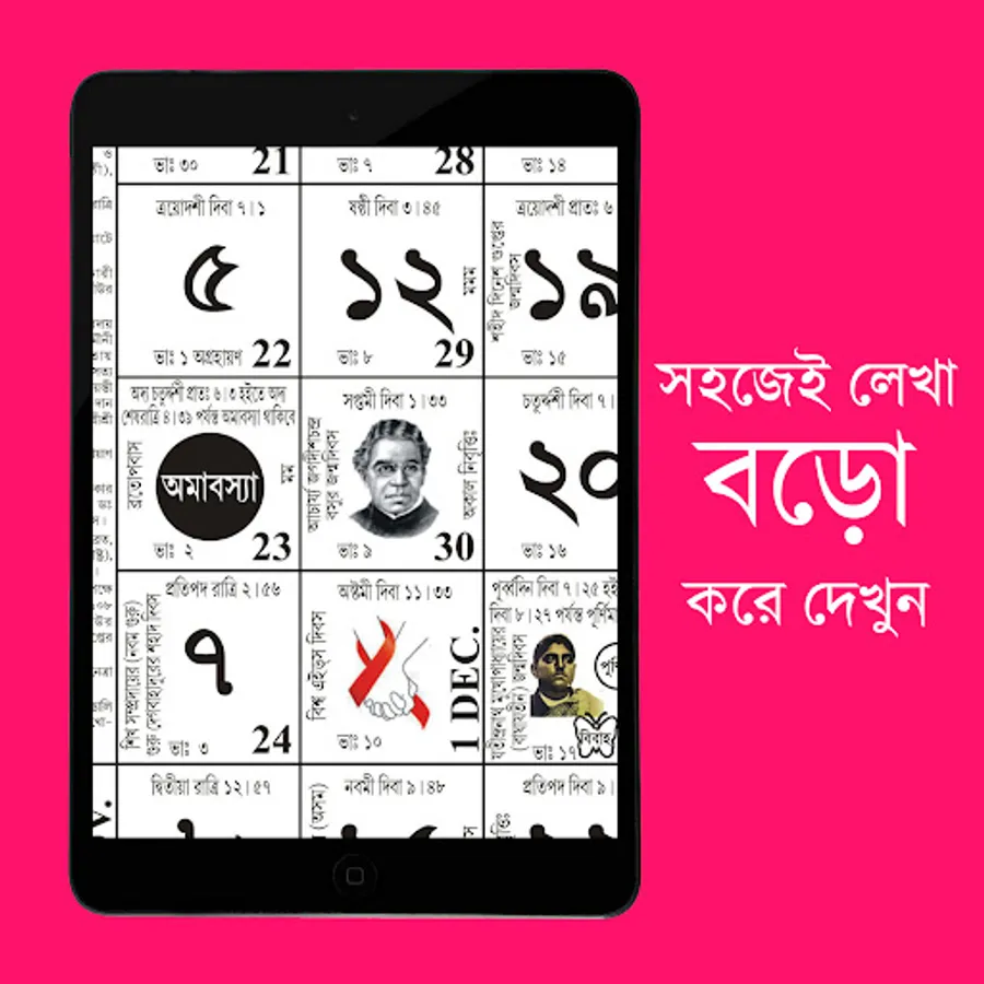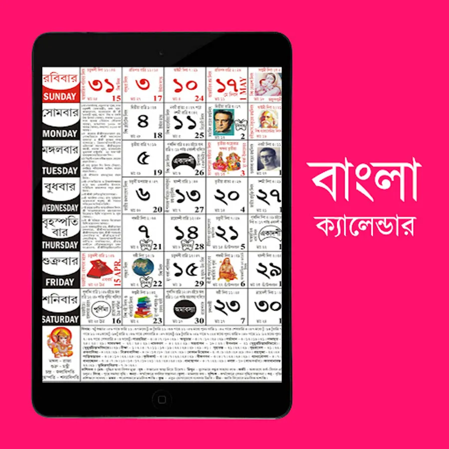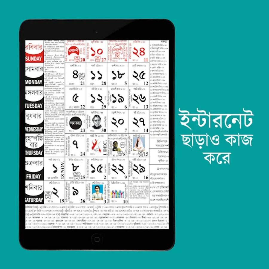 This app is completely offline and has detail calendar dates . You will get day by day details and all in bengali . all holidays and ekadashi , This app is te famous Wall calendar of bangla homes . Page by page calendar . here you will get the following months