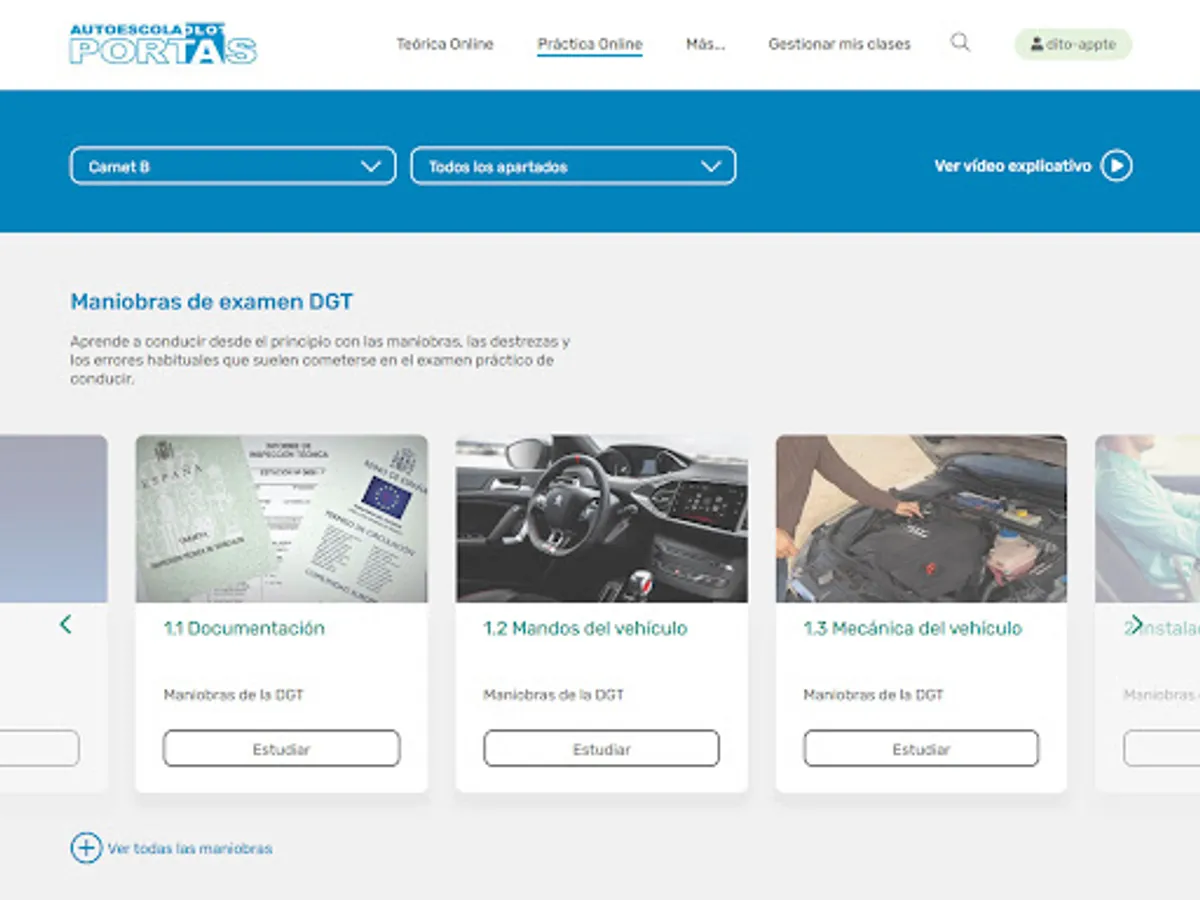 With the Portas Driving School app, you can take more than 3,500 tests with explanatory videos to help you prepare for and successfully pass your theory test. You'll also find videos of DGT maneuvers that will teach you how to drive to avoid infractions on your practical exam. Everything you need to get your license is in the Portas Driving School app.