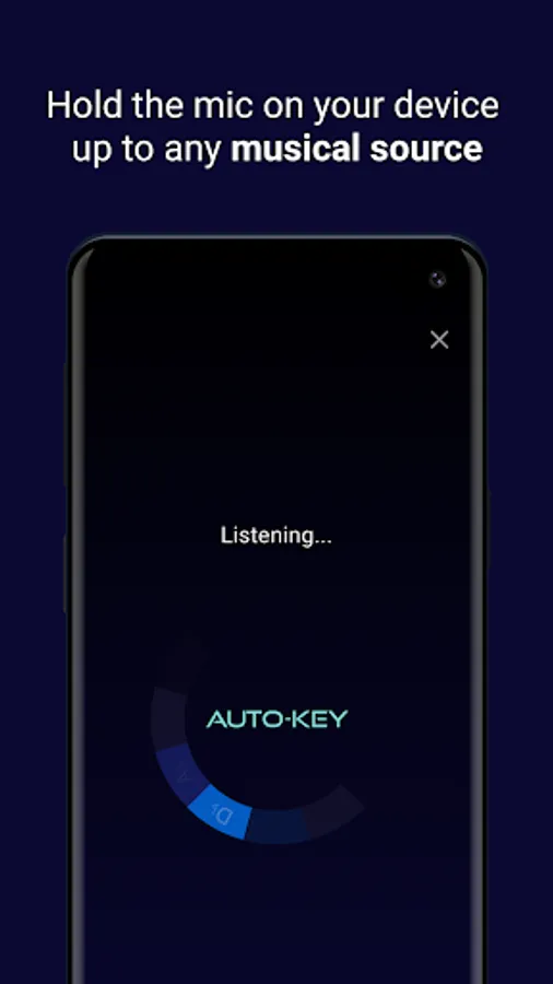 You can use Auto-Key mobile on any audio coming from a speaker or from an acoustic instrument or a voice. Tap on the Auto-Key logo in the app home screen to find the key.
