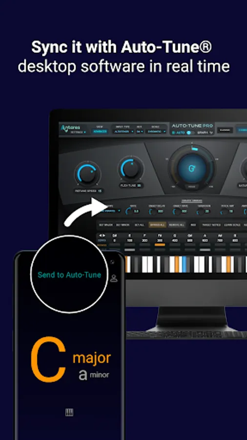 Detect the musical key of any tune whether in the studio or on the go. Instantly share and sync the musical key with your Auto-Tune session running on your computer DAW.