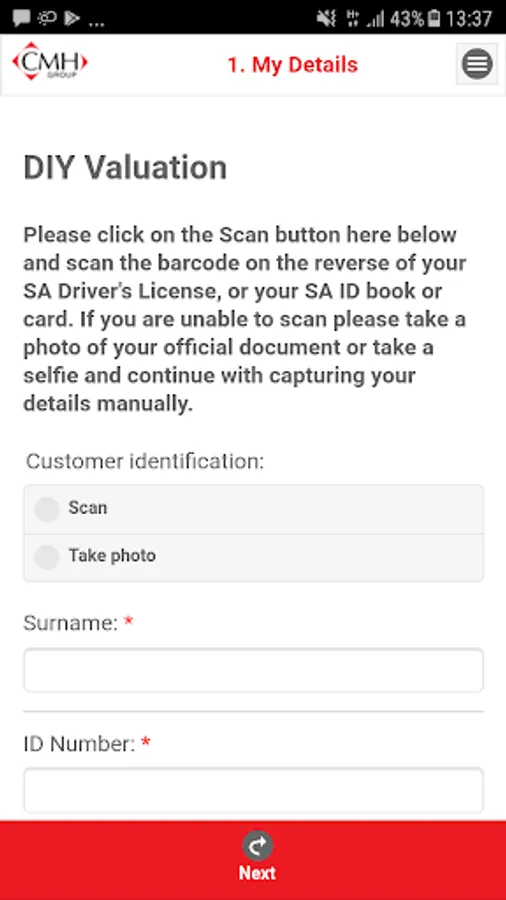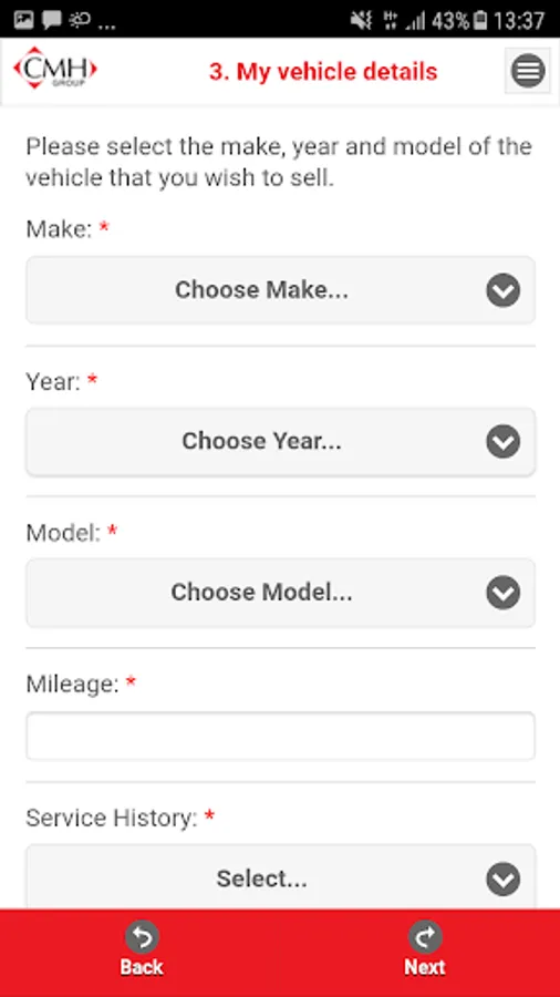 DIY valuation app for customers of the CMH Group. Allows customers to remotely send their vehicle valuation.