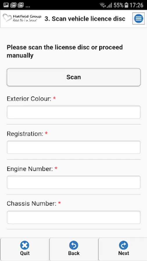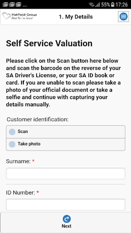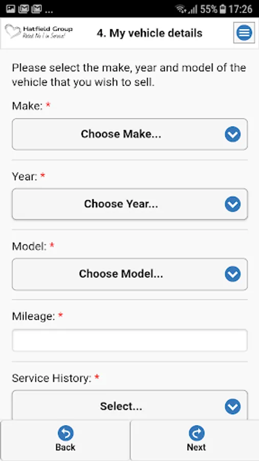 DIY valuation app for customers of the Hatfield Group. Allows Hatfield customers to submit their vehicles remotely.