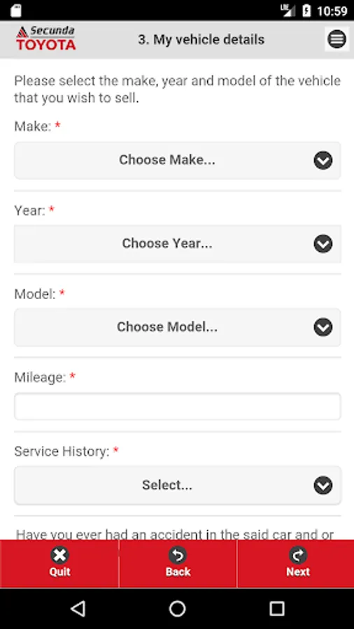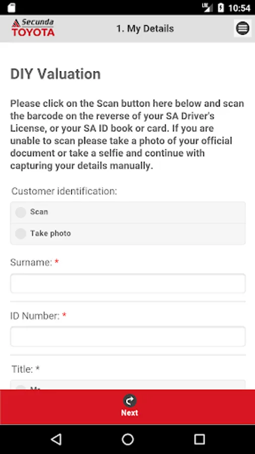 DIY valuation app for customers of Secunda Toyota. Allows customers to remotely send their vehicle valuation.