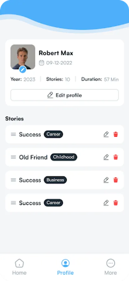 With AutoBiographer, capturing your memories is effortless. Simply use our intuitive recording feature to document your life story in your own words. Our advanced AI technology then takes the reins, meticulously crafting your recorded story into a beautifully written narrative that captures the essence and depth of your experiences.