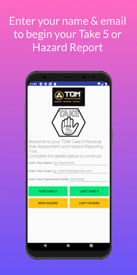 This is a quick and easy to use Take 5 Risk Assessment application that also includes a hazard / incident / near miss / injury reporting tool customised by ThatAppGuy for TDM electrical.