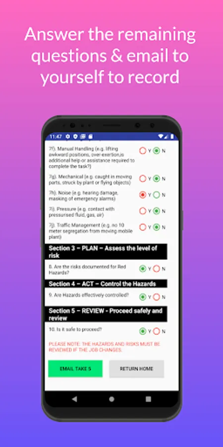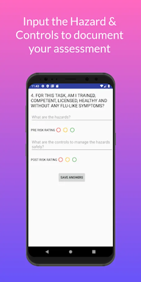 WARNING – Use of this application does not guarantee there are no risks with the work you do however will likely help you identify as many as possible. Jobs change frequently and if you don’t stop to assess the changes, it may limit your ability to identify the risks.