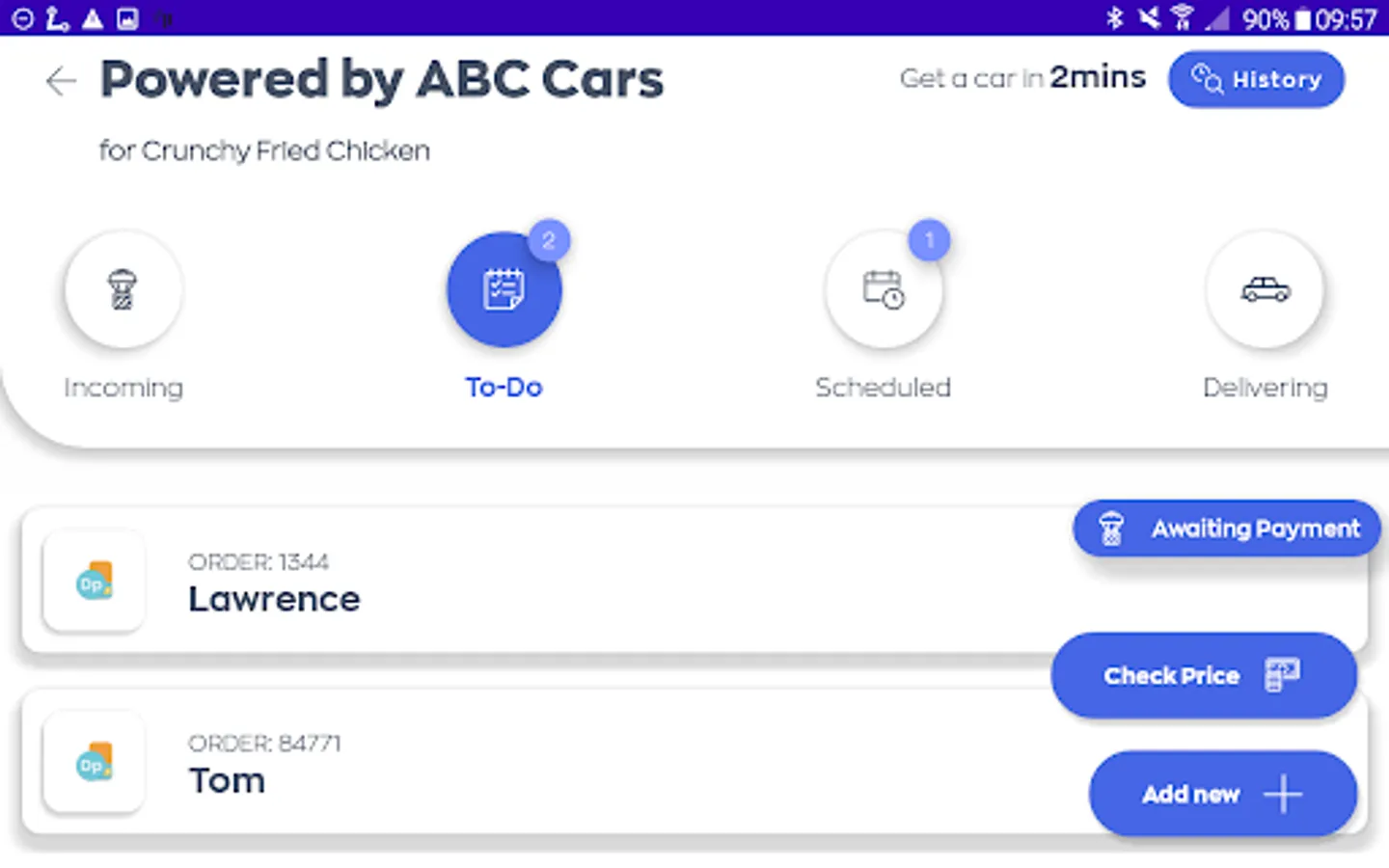 The Delivery Point App is a great way for you to manage your orders from when they are placed, all the way to delivery, and allows the quick booking of taxi rides to pick up orders placed by your customers.