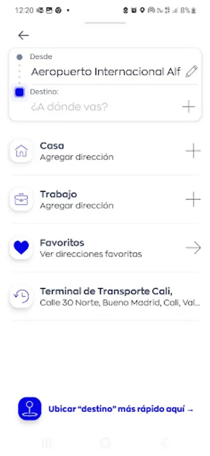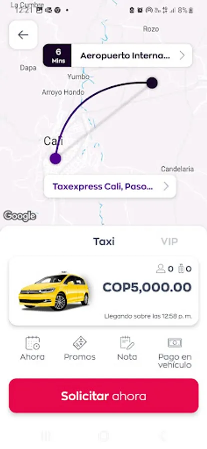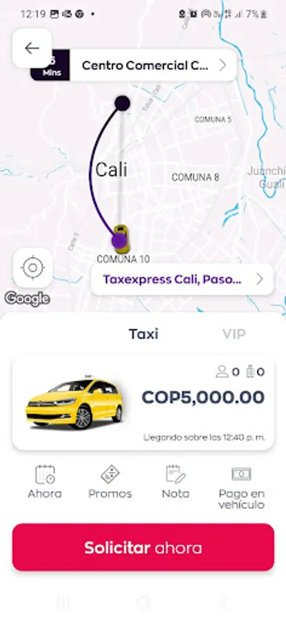 • Request a taxi in the city of Cali.