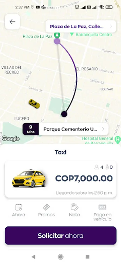 Welcome to the application 3732222 to request taxi service in the city of Barranquilla.