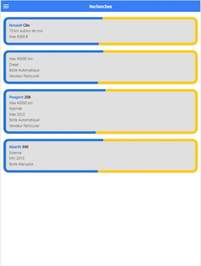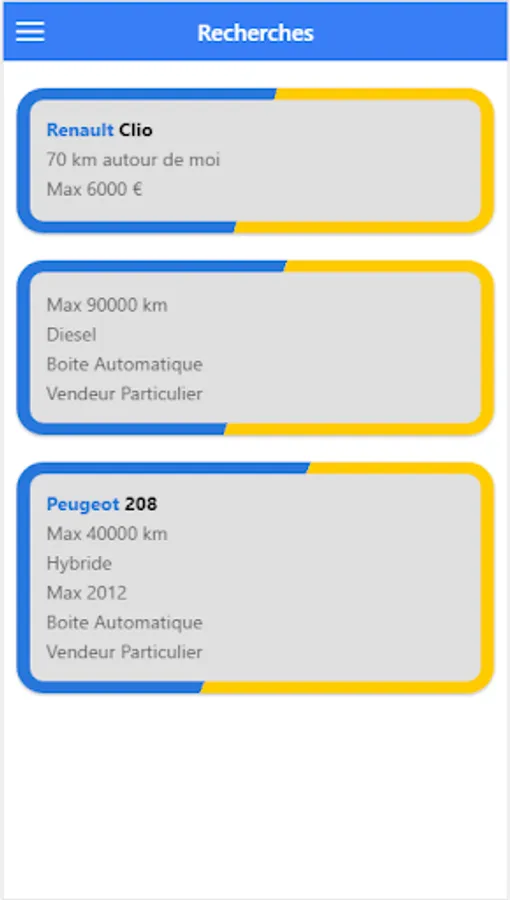 Easy, clear and ad-free application to facilitate your searches for used cars throughout France.