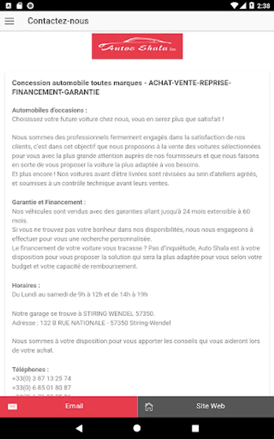Founded in 2003, AUTOS SHALA is one of the leaders in the sale of used cars in the Lorraine region. The notoriety that we have acquired is the result of more than 15 years of work, the sole purpose of which is to offer quality advice, offer appropriate financing and demonstrate flawless availability in after-sales service. -sale.