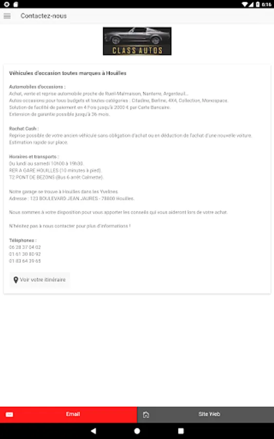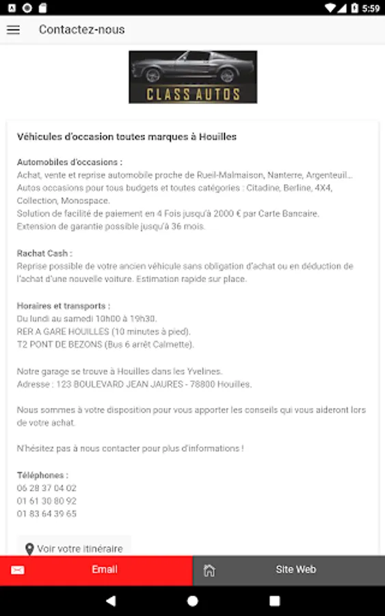 Consult in real time the vehicles available for sale on our vehicle fleet through our mobile application. Do not hesitate to contact us for any request.
