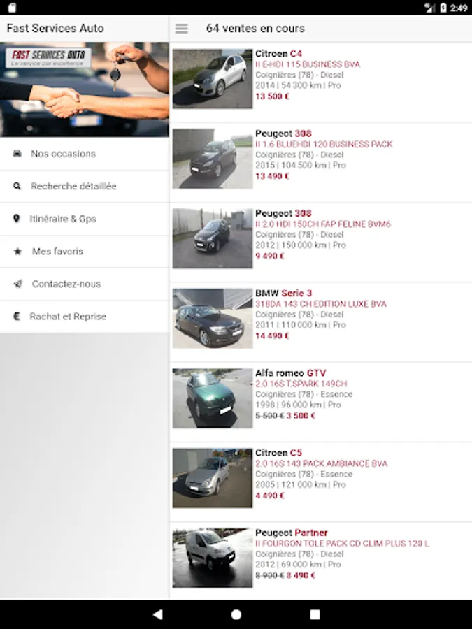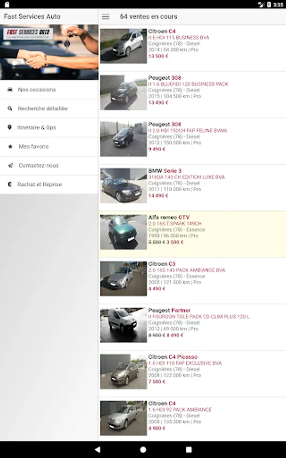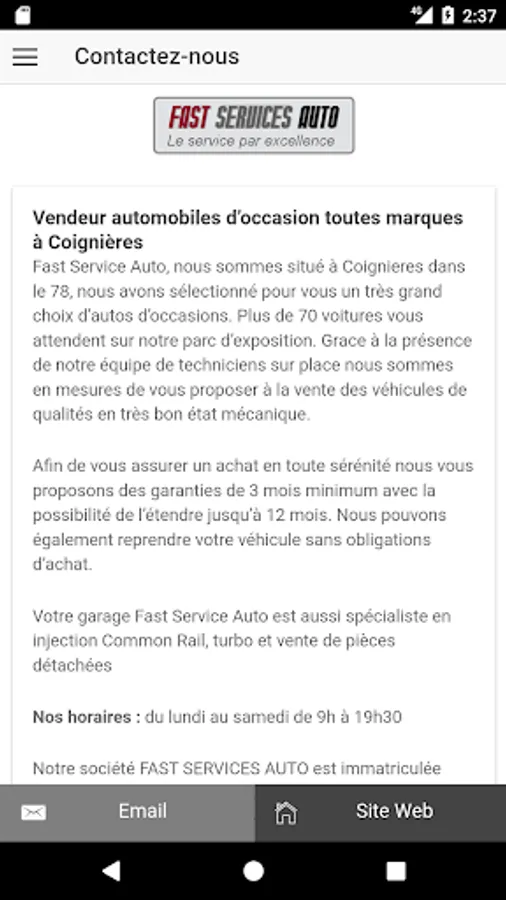Fast Auto Service, we are located in Coignieres 78, we selected a very wide selection of used cars. More than 70 vehicles are waiting for you on our exhibition park. Thanks to the presence of our team of technicians on site we propose measures to the sale of vehicles qualities in very good mechanical condition.