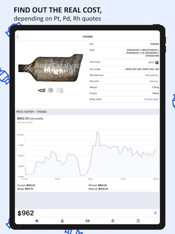 • Find out the accurate value of this auto part, based on the precious metal costs (taken from the Kitco exchange)