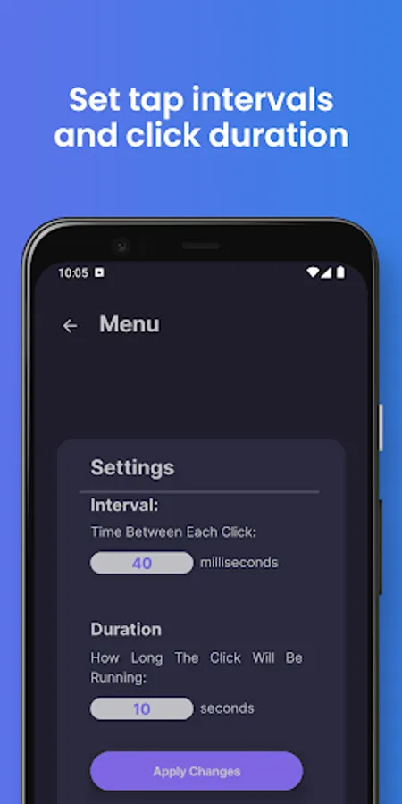 We use Accessibility Service to provide seamless functionality. Granting this permission allows the app to perform repeated taps at any location on your screen, with the interval of your choice.