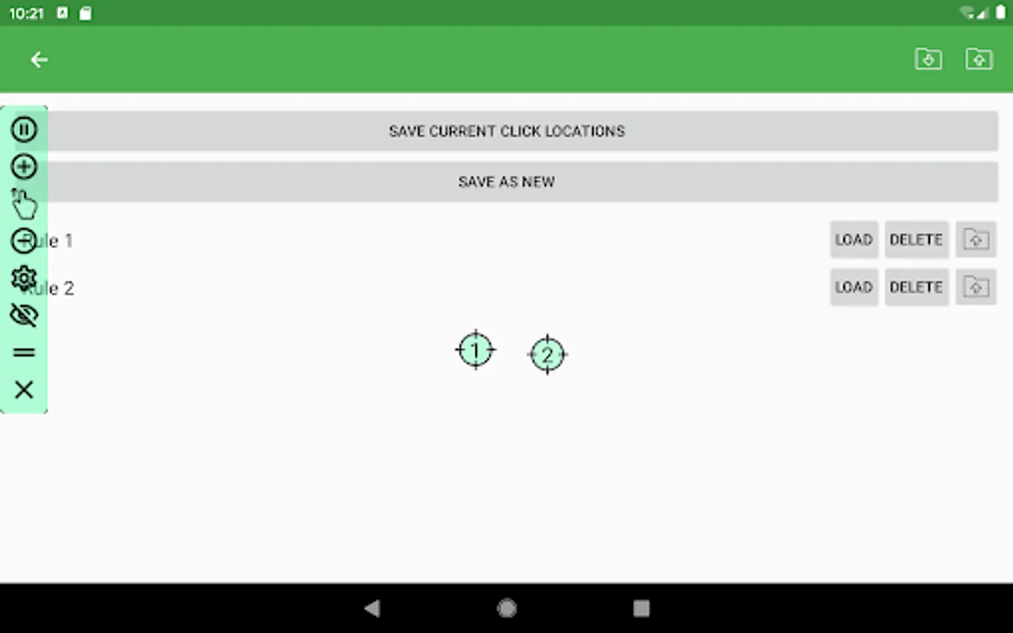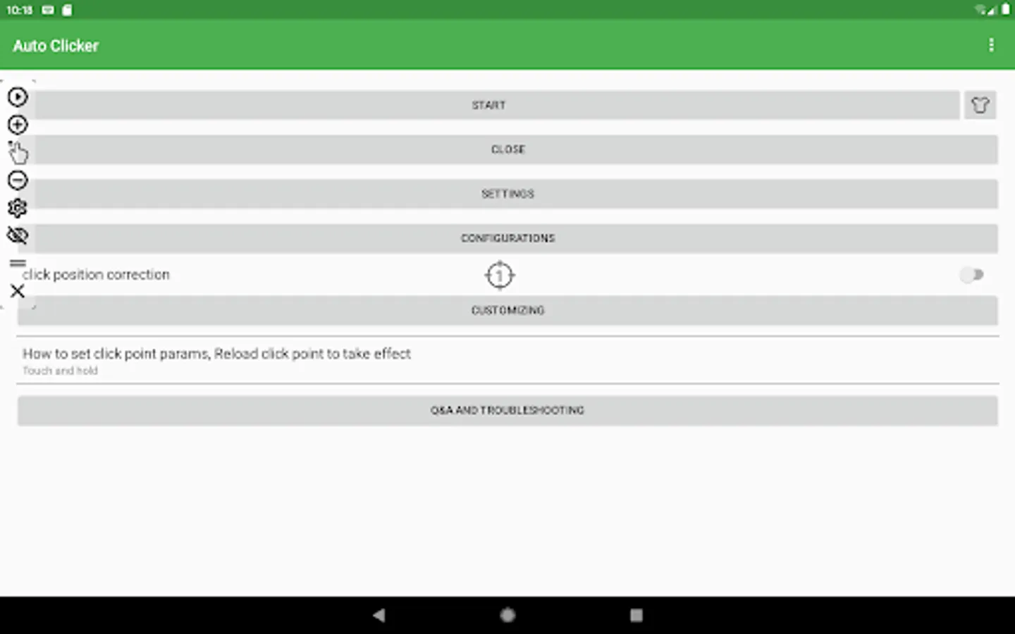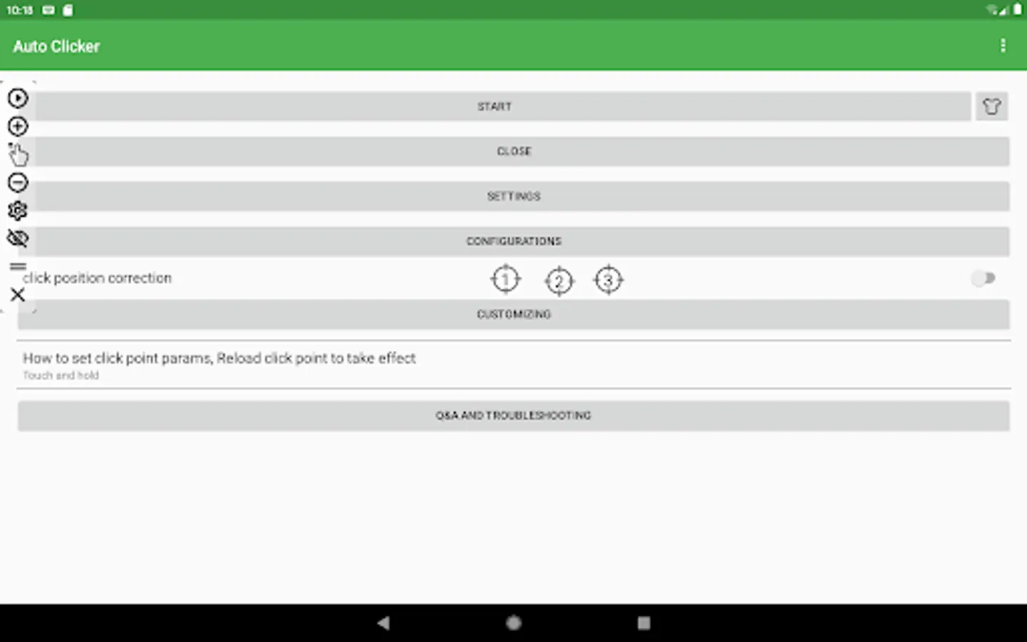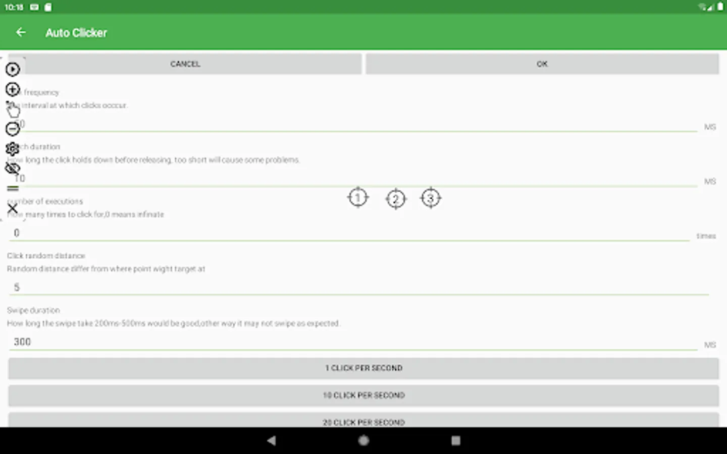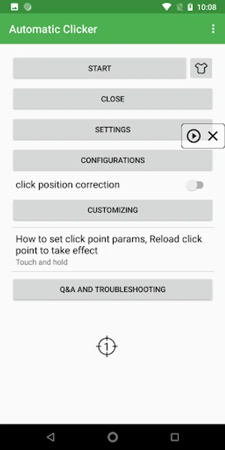 Simple Auto Clicker features a floating control panel to start/end the automatic clicking. You can add any click points on the screen with the control panel.