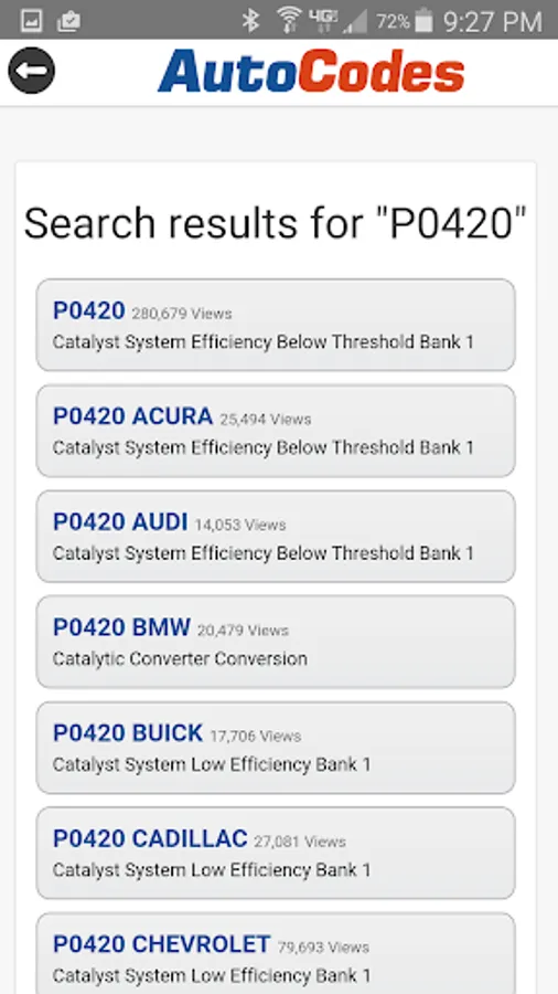 The AutoCodes.com Android App is the perfect complement to technicians and enthusiast with OBDII diagnostic tools that don't provide the full description and causes to repair OBDII (OBD2) code problems.