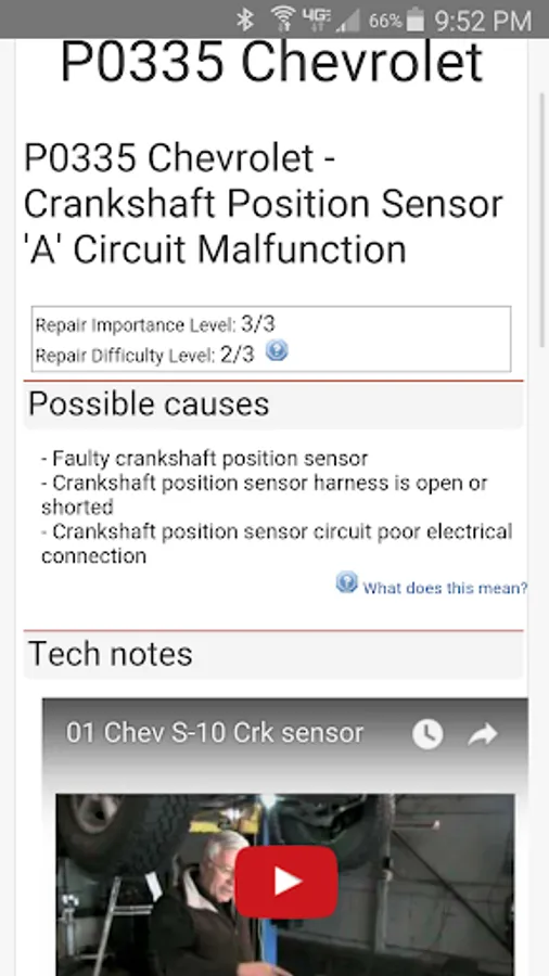 Just type an OBDII code and get a full definition, description, possible causes, and repair information. Most code information includes images, diagrams, and videos on how to fix code problem.