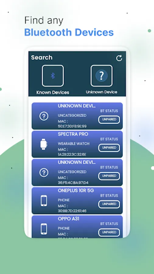is designed to display a list of Bluetooth devices that are within a certain range, typically set at 10 meters, along with their device information. This feature uses the Bluetooth radio on the user's device, such as a smartphone or a computer, to scan for Bluetooth signals emitted by nearby devices.*