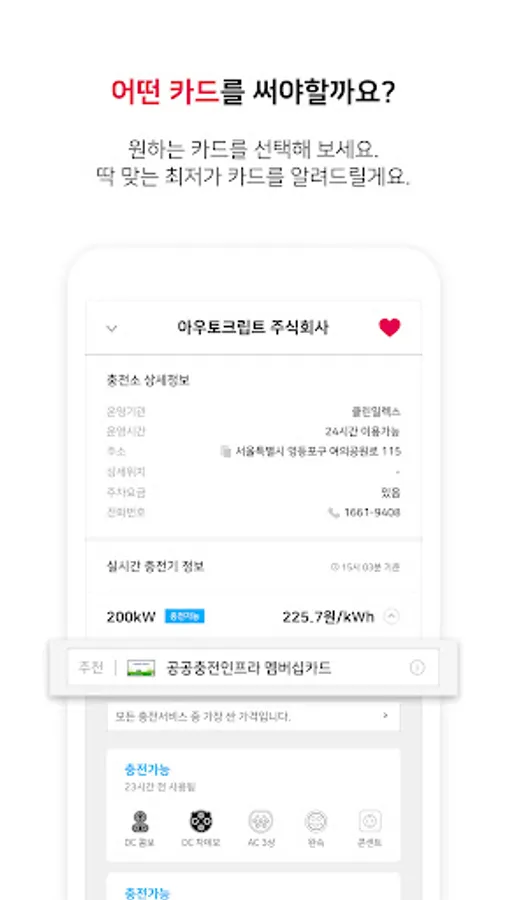 Among the various charging cards that users have, it provides information that can be used at the lowest price at the charging station.