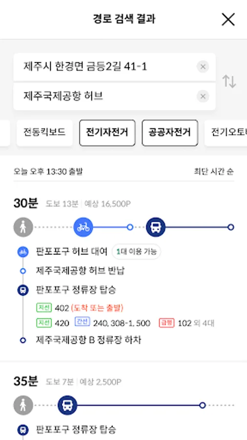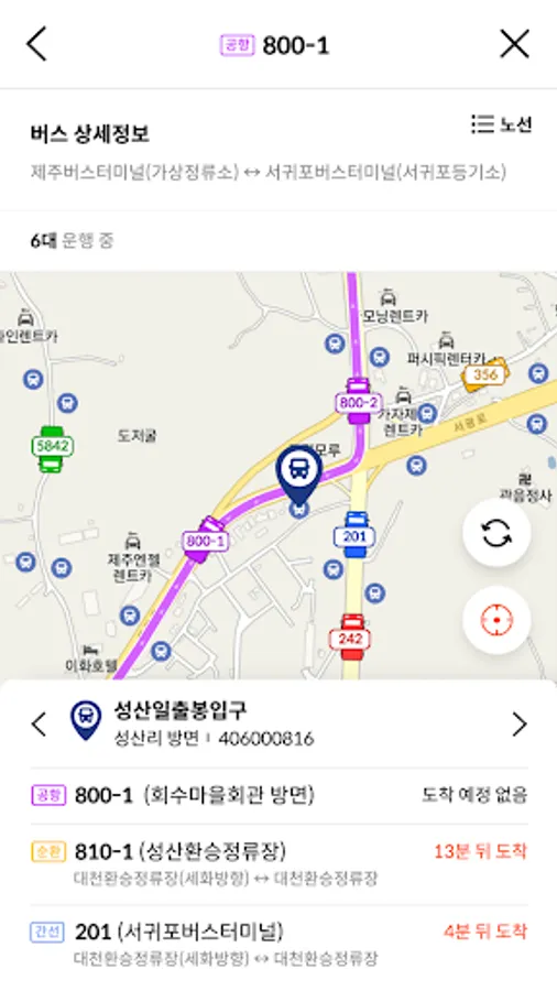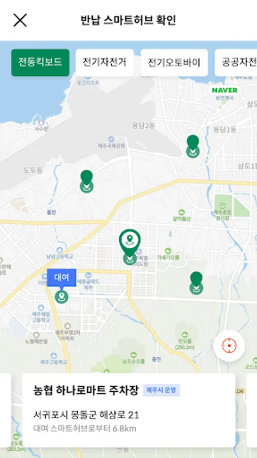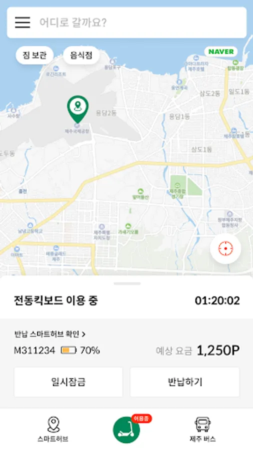 - Location Information: The user's current location is displayed on the map. Based on the user's current location, information on buses, shared mobility, tourist attractions, and luggage storage is provided.