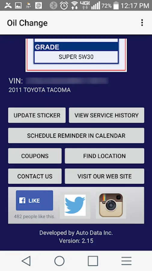 Stickers for multiple vehicles can be stored by the app so you can keep tabs on all your family vehicles or your company's vehicle fleet. You can even customize your oil change interval preferences individually for each vehicle.