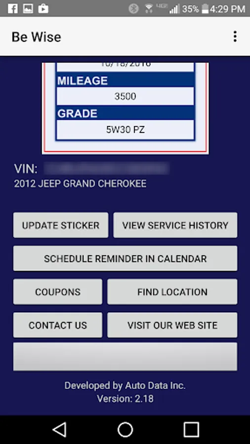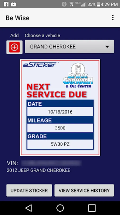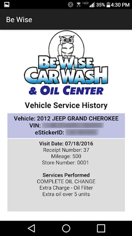 The eSticker app also lets you view a history of all services performed on your vehicles by Be Wish Car Wash & Oil Center at any time, so you'll always know which services have been performed on each of your vehicles, and when they were last performed.