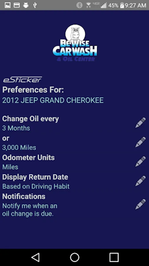 Keep on top of your vehicle's maintenance with this free eSticker app from Be Wish Car Wash & Oil Center.