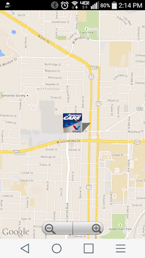 Other features include the ability to schedule a reminder on your calendar based on your vehicle's eSticker date and call up a map to find your nearest Express Care Denton location.