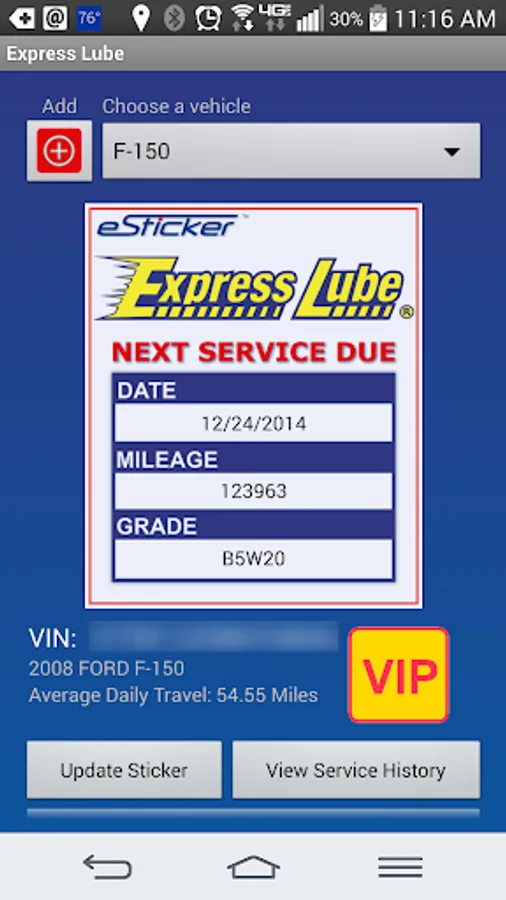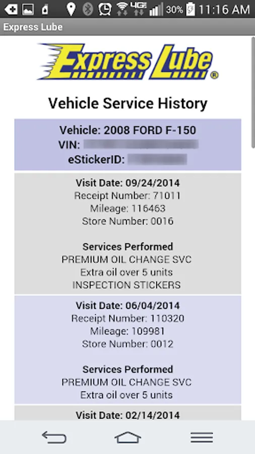 The eSticker app also lets you view a history of all services performed on your vehicles by Express Lube at any time, so you'll always know which services have been performed on each of your vehicles, and when they were last performed.