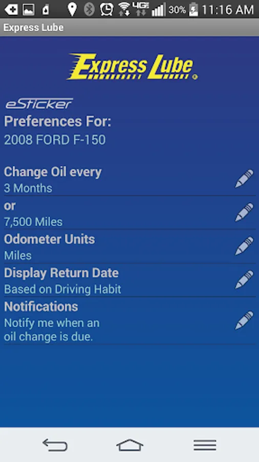 Keep on top of your vehicle's maintenance with this free eSticker app from Express Lube.