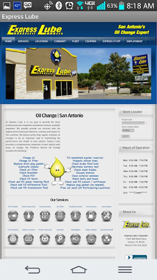 Other features include the ability to schedule a reminder on your calendar based on your vehicle's eSticker date and call up a map to find your nearest Express Lube location.