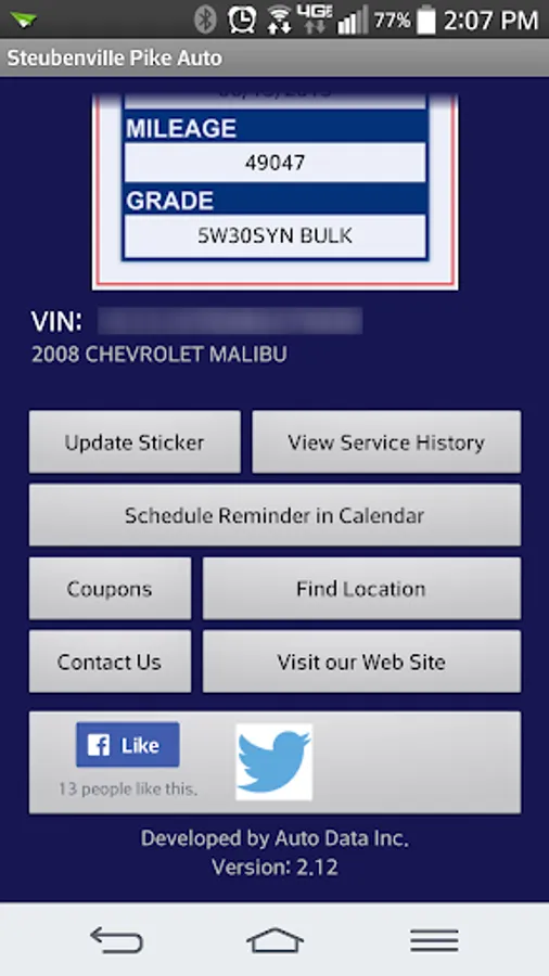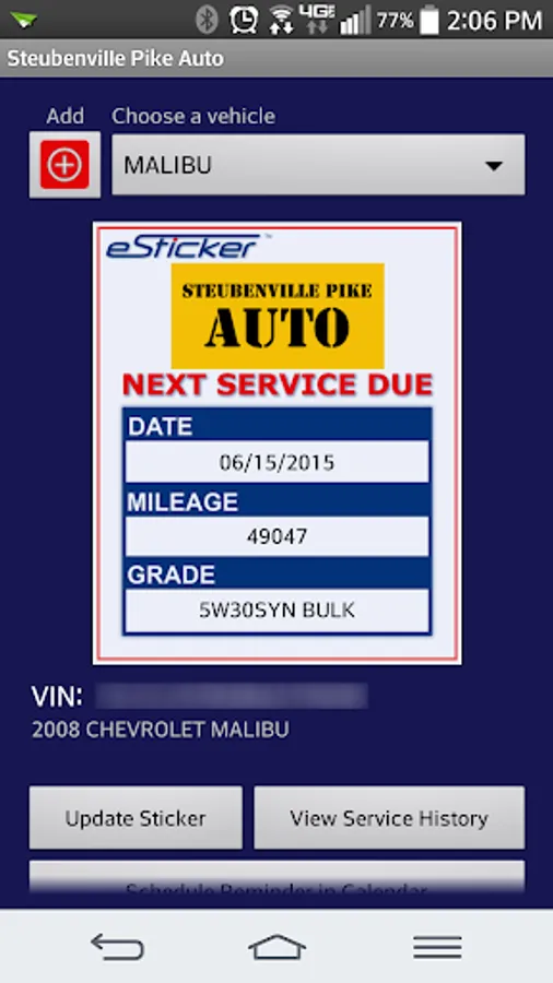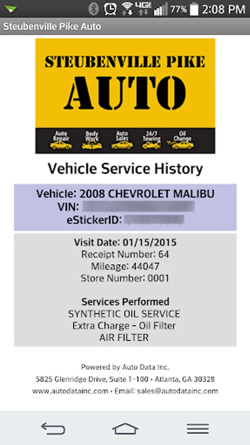 The eSticker app also lets you view a history of all services performed on your vehicles by Steubenville Pike Auto at any time, so you'll always know which services have been performed on each of your vehicles, and when they were last performed.