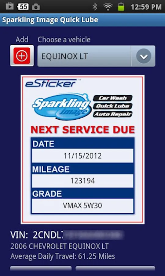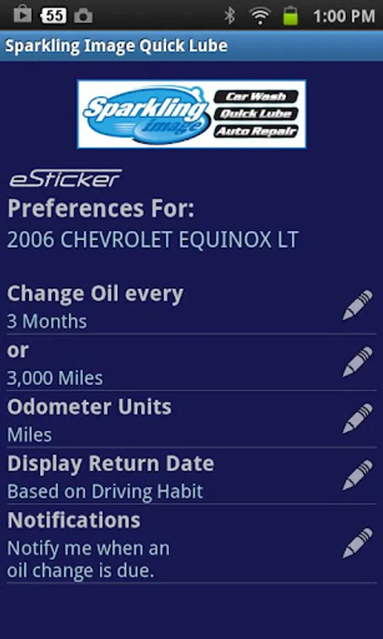 Keep on top of your vehicle's maintenance with this free eSticker app from Sparkling Image Quick Lube.